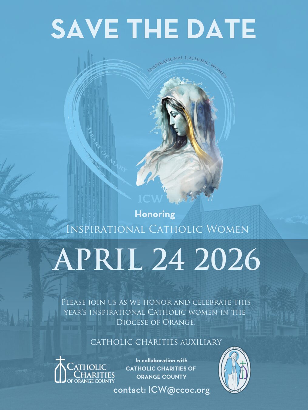 Don’t miss the most anticipated benefit dinner of the season – Catholic Charities Auxiliary 2026 Inspirational Catholic Women event happening on April 24th at the iconic Christ Cathedral Arboretum!